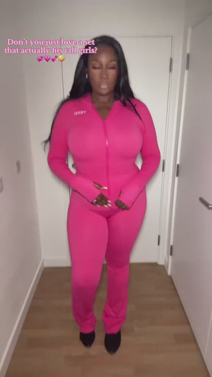 Own the moment with the Pitaya Pink Tall Set — the Yemzi hooded zip jacket and matching straight leg trousers designed to make tall women feel seen, confident, and unstoppable. Crafted in premium, breathable fabric, this figure-hugging duo is cut with extra length where it matters, sculpting your silhouette while giving comfort, movement and attitude.